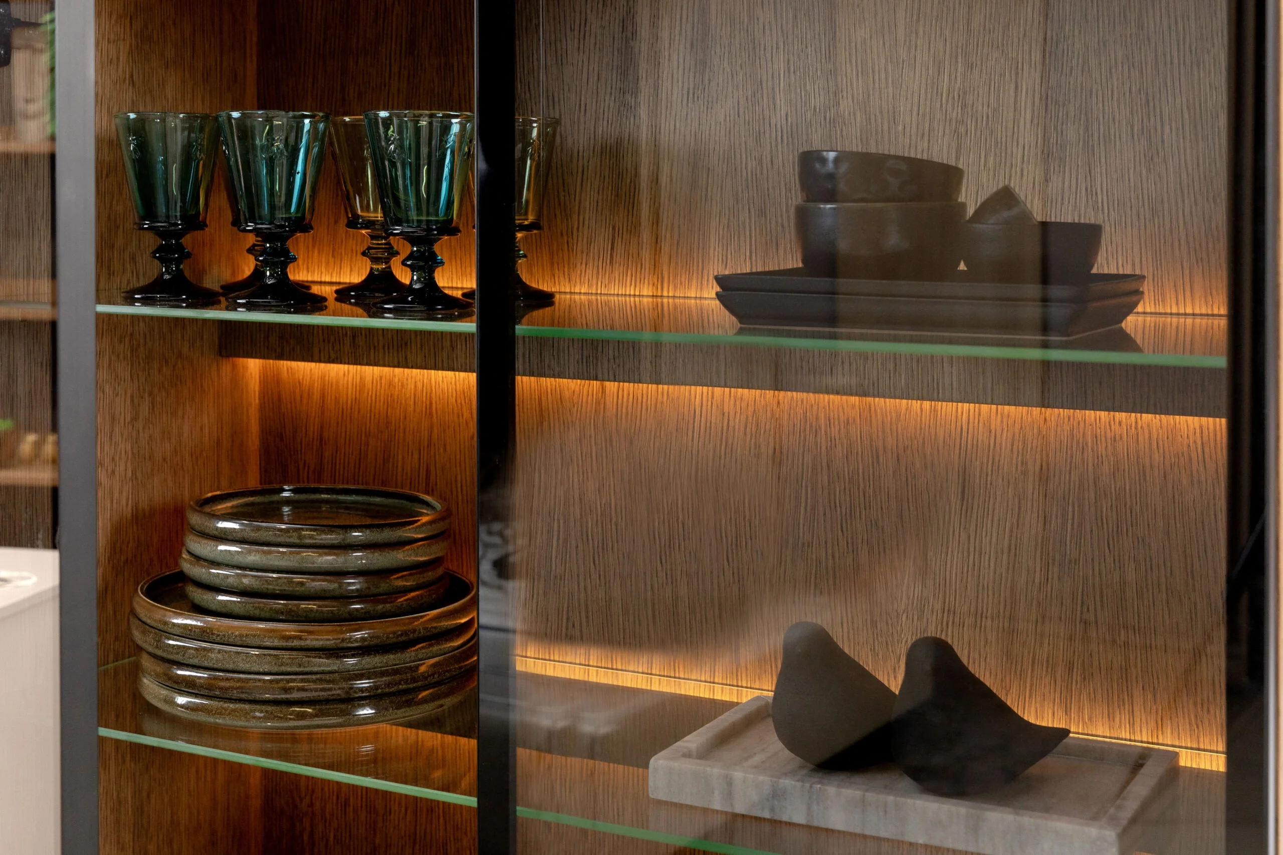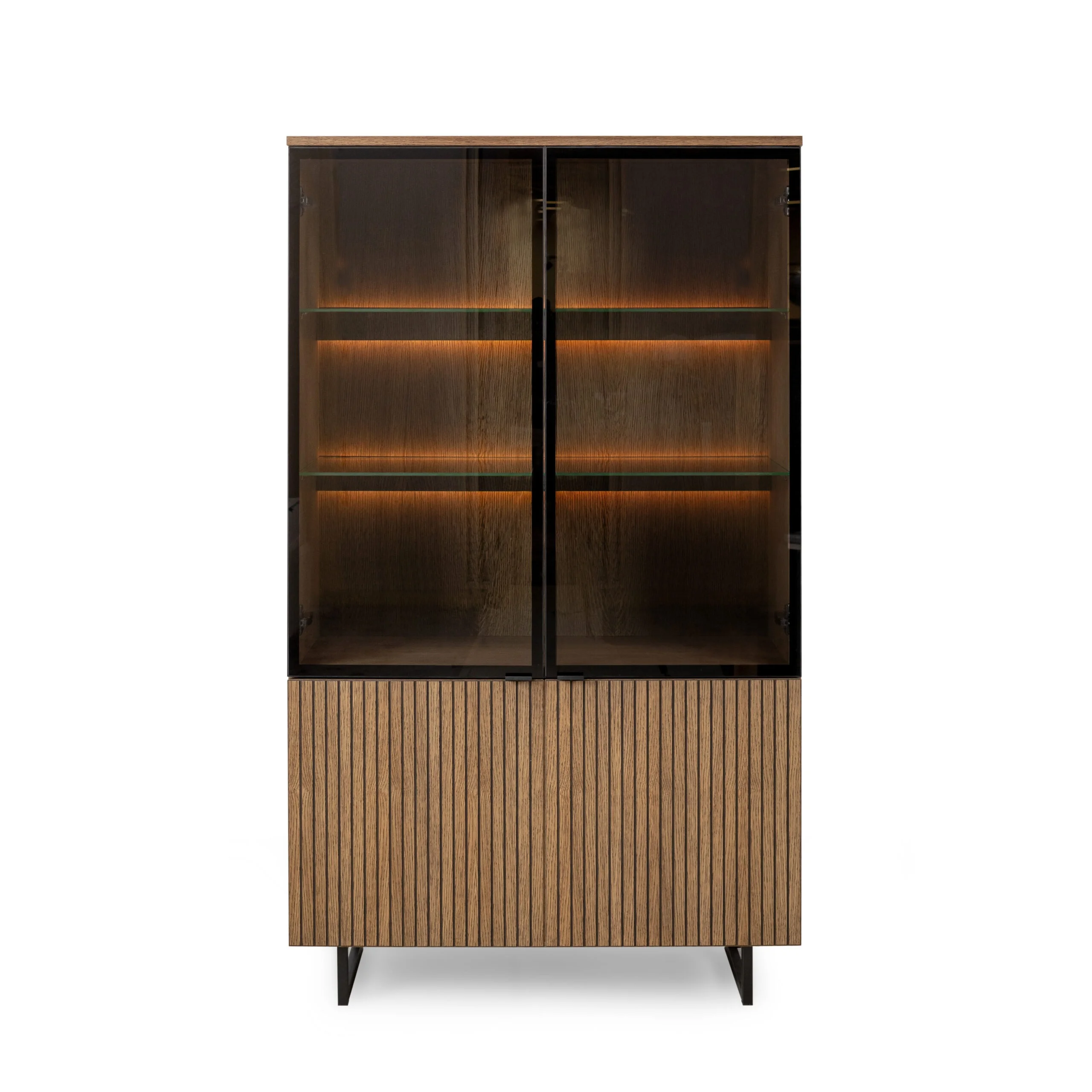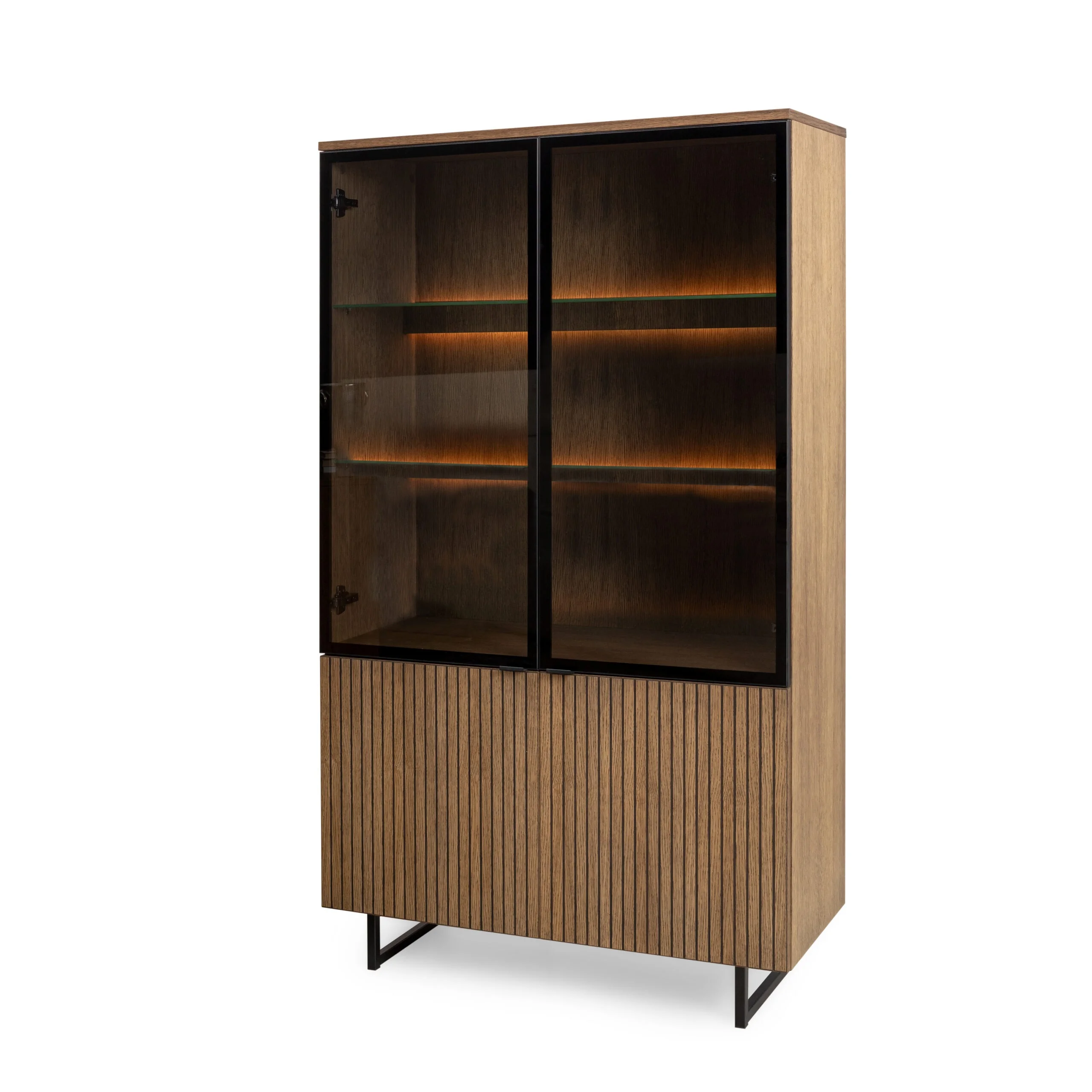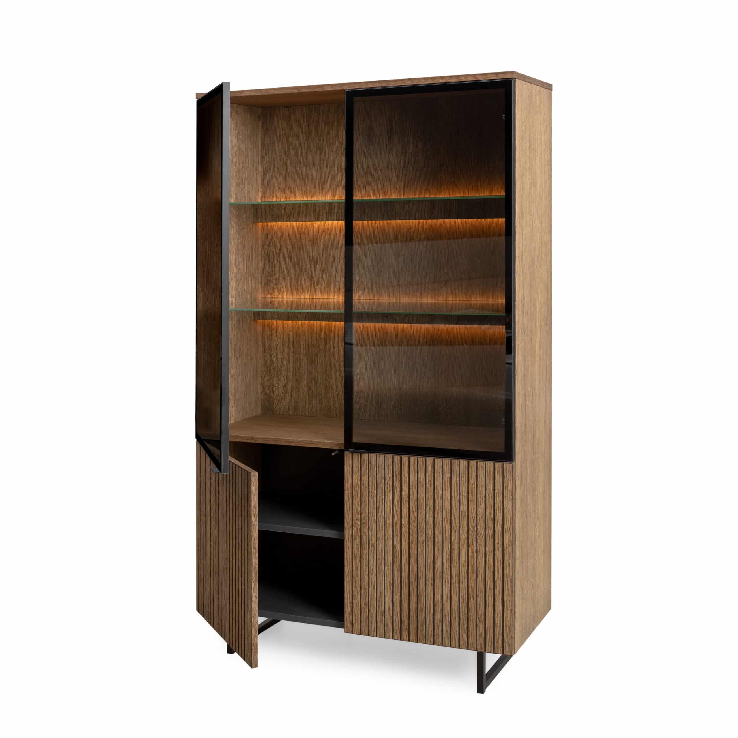 Natūralaus ąžuolo vitrina su durelėmis ir LED apšvietimu